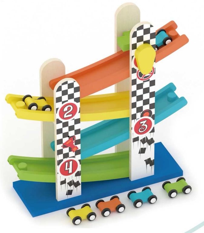Ах, как они прыгают, переворачивается в полете снова едут и прыгают...быстрее, быстрее... На это зрелище можно смотреть бесконечно. Маленькие тяжеленькие деревянные машинки, прыгающие по высокой трассе, с яруса на ярус, они такие смелые, весёлые, юркие. Вашему малышу, да и всей Вашей семье эта игрушка точно не наскучит.