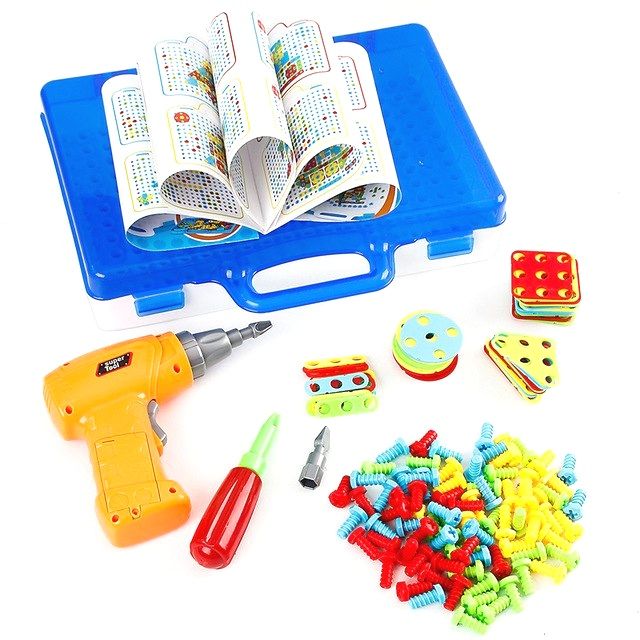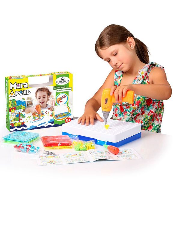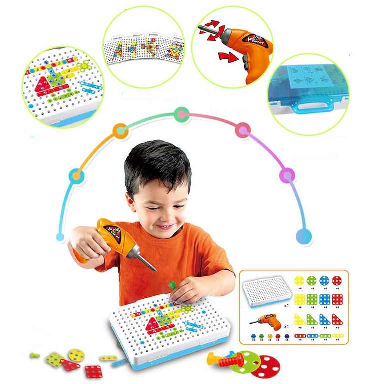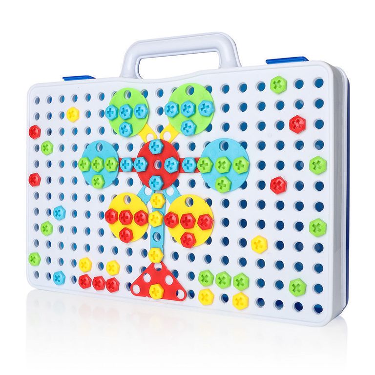 Дети могут весело вкручивать красочные винтики в доску и создавать сотни конструкций.