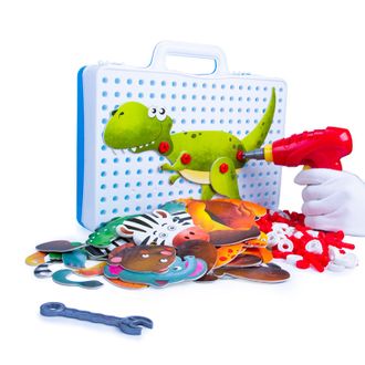 Супер хит! Полюбившийся чемоданчик с инструментами и дрелью на батарейках теперь даёт возможность развивать фантазию и складывать животных. Можно перемешивать ножки, головы и туловища и получать совершенно уникальных смешных зверят, придумывать им названия, давать имена.