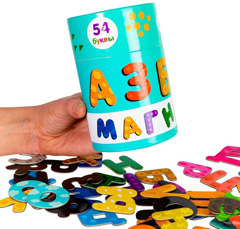 Магнитная азбука в подарочной коробке-тубусе прослужит вашему ребёнку долго и станет одной из любимых развивашек. Уникальна она тем, что принт очень лаконичен и ассоциативен, и не отвлекает пестростью от изучения самой формы буквы, таким образом малышу будет легче запомнить буквы: Н-носок, Г-горошек, К-клетка. Сами буковки яркие и глянцевые, к тому же крупные, малышам будет очень приятно их будет в руках. Ну а писать целые фразы и смешные послания на холодильнике - станет любимым занятием вашей семьи, ведь букв в наборе 54, основные повторяются по 2-3 раза ! Подарите бурю восторга своему ребёнку, а себе добавьте яркости и разнообразия в интерьер и будни!