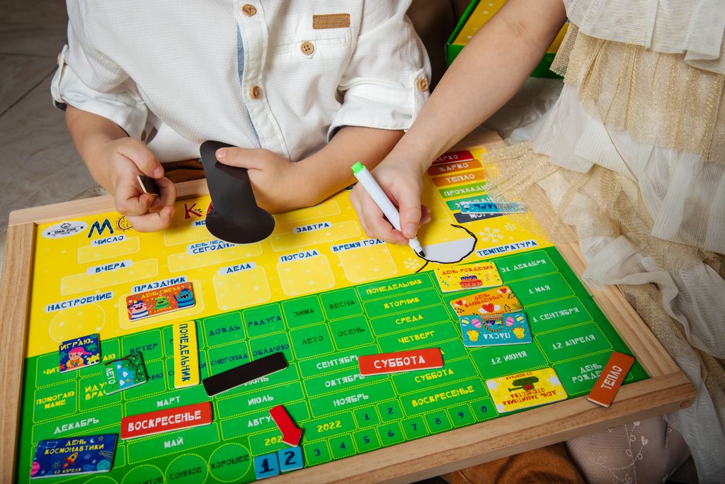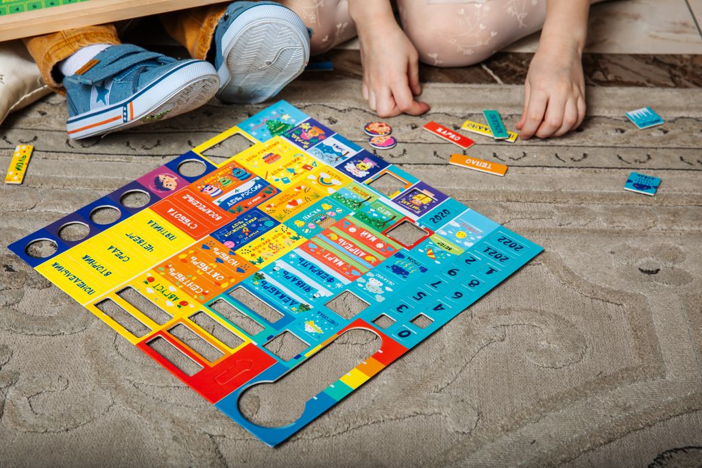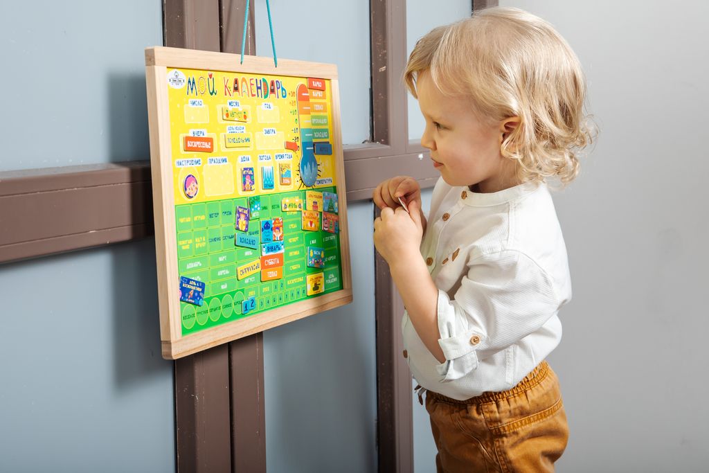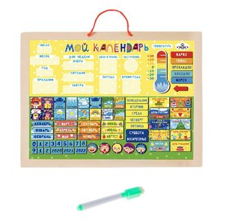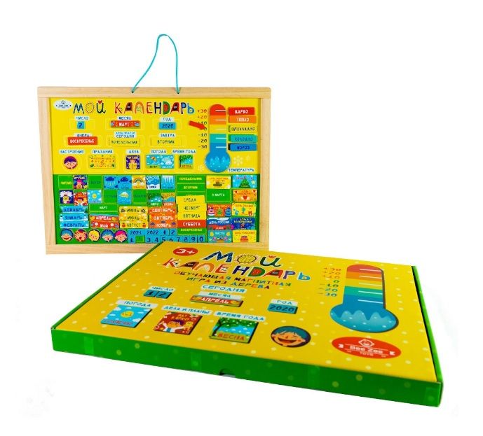 Потрясающий обучающий и развивающий органайзер "Мой календарь" поможет вашему ребенку в легкой и игровой форме познакомится с понятиями год, месяц, неделя, день. Малыш сможет разобраться с частями суток, осознать понятия вчера-сегодня-завтра. Отдельный блок посвящен погоде и температуре, устанавливайте магнитные отметки температуры на градуснике, определяйте и характеризуйте погоду вместе с малышом и выбирайте забавный магнитик соответствующий погоде.
