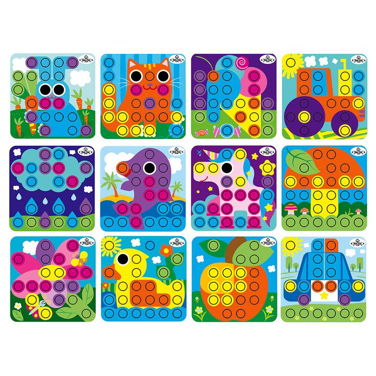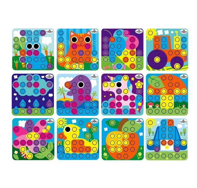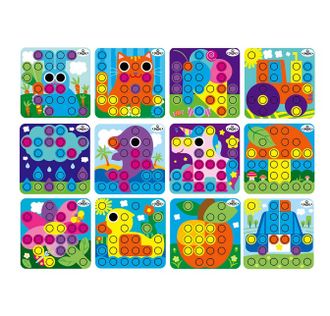 Дополнительный (запасной) комплект карточек-трафаретов для полюбившейся многим детям мозаики "Пуговицы". В наборе 12 ярких и интересных картинок. Подойдёт для всех обладателей наборов мозаики с 45 пуговицами-деталями. Трафареты выполнены из плотного ламинированного картона и имеют круглые прорези.