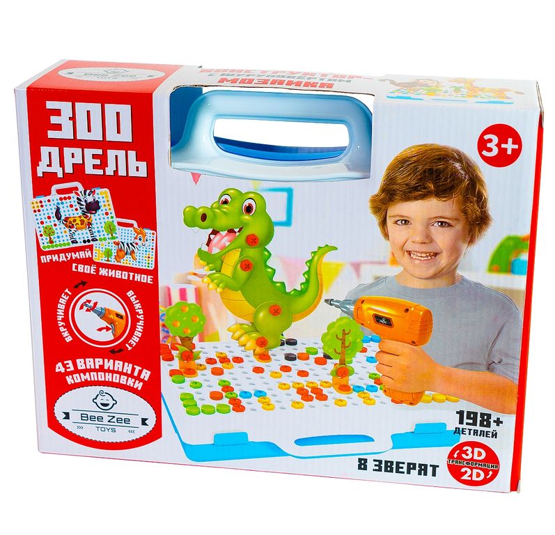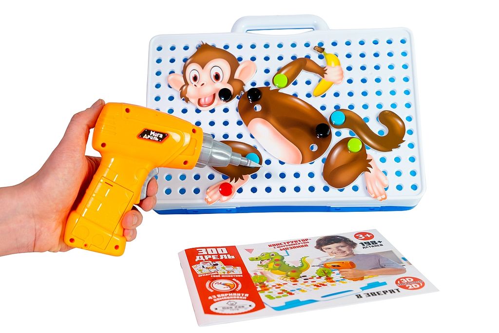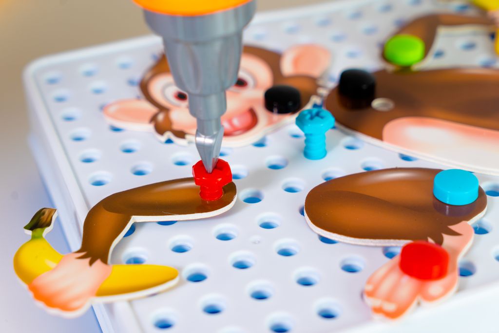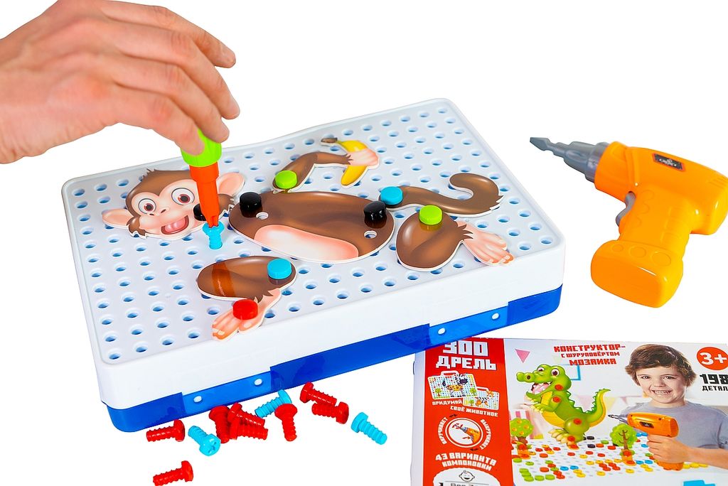 Дети могут весело вкручивать красочные винтики в доску, и создавать сотни конструкций.